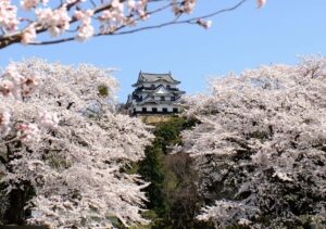 夜桜 × 城 × 水面の反射が織り成す風景は非常に人気が高いです。